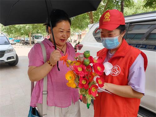 在活动现场,巾帼志愿者们通过文艺宣传演出、悬挂禁毒宣传横幅、发放禁毒宣传册、面对面讲解等形式,向居民现场讲解毒品的种类、危害以及禁毒法律法规等知识,引导居民群众积极参与禁毒宣传,让毒品无处遁行。宣传演出活动结束后巾帼志愿者们深入街边商铺、居民楼院,向居民群众展示“罂粟花”,耐心的向在场居民普及了什么是毒品、毒品的危害、禁毒相关法律法规等知识,此次活动,共发放《禁毒法》《致全市家庭的一封信》等各类宣传资料500余份。