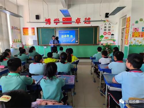 为进一步深化未成年人毒品预防教育工作,增强未成年人识毒、拒毒、防毒意识,加强校园毒品预防工作,守护未成年人的身心健康。敦煌市人民检察院组织法治班主任走进第五小学开展禁毒知识宣传教育活动。