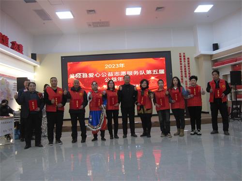 该志愿服务队在井陉县新时代文明实践中心召开的这场充满温暖与感动的公益年会上,总结了2023年度志愿服务工作,表彰了优秀志愿者和管理员,同时对两名困境儿童进行了现场救助,并倡导全社会共同参与公益志愿者活动。