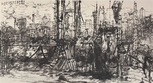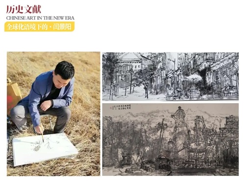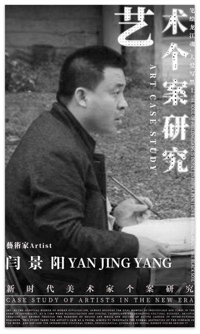 闫景阳作为黑土画派领军者,以笔锋丈量龙江热土的艺术实践中,构建起传统笔墨与时代精神的深层对话。其《四大精神》系列、《冰城芳华》等代表作,既延续着中国画"澄怀观道"的文脉传统,更以独创的"油彩皴""积墨法"等语言革新,将抗联精神、铁人精神等时代命题转化为水墨的精神坐标。从七星峰的抗联密道到铁人纪念馆的工业图腾,从中央大街的欧陆穹顶到湿地荷花的自然诗语,艺术家以"微观"的视觉考古解构黑土地文化基因,通过"中观"的地域美学建构回应全球化语境下的身份命题,最终在"宏观"层面展现出艺术作为社会能量场的变革力量。本研究以这位兼具创作者与理论家双重身份的艺术家为样本,通过图像语义分析与创作现场考察,揭示其如何将传统笔墨转化为文化记忆的活性载体——当焦墨勾勒的钻井架与抗联密道的枯笔皴擦在宣纸上共振,不仅重构了地域美术的叙事范式,更为中国画的当代转型提供了具有方法论意义的实践方案。