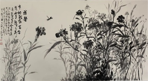 《黑土芳馨》以黑土地山花野卉与本土野生荷花为载体,“馨”字既指花卉之香,更喻对故土的拳拳之心。达子香以胭脂红泼染花瓣,如火焰冲破残雪,展现寒地植物“敢为春先”的倔强;野百合叶片以兰叶描勾勒,线条柔韧如丝带,花心藤黄点染似露珠凝结,暗含“卑微却执着”的生命力。