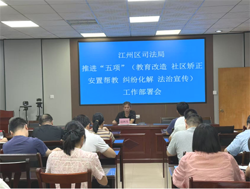 为预防和减少重新犯罪,6月27日上午,江州区司法局召开专题工作部署会,统筹推进教育改造、社区矫正、安置帮教、纠纷化解、法治宣传“五项”工作,局机关相关股室和11个基层司法所全体工作人员参加会议。 工作部署会现场