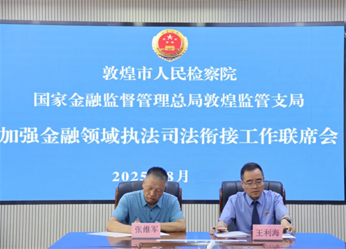 近日,敦煌市人民检察院与国家金融监督管理总局敦煌市监管支局联合召开金融领域执法司法衔接工作联席会,旨在强化金融检察与监管协同合力,聚焦惩治预防金融犯罪、维护金融安全、保障群众利益三大核心目标,畅通衔接渠道以提升金融领域治理效能。