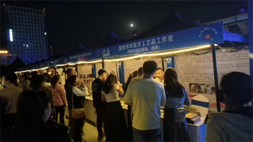 沙州夜市景区创业孵化平台作为创业载体,集中呈现了多个创业项目成果,包括非遗唐卡、釉上彩工艺、敦煌特色手绘包、飞天果韵、多元文创产品及非遗冷香丸等,凸显了孵化平台在培育市场主体、推动文旅融合方面发挥的积极作用。此外,甘肃博瑛颐成文化创意有限公司的非遗面塑、汉塞香礼文化产业馆的泥皮冰箱贴、师古堂工艺品店的非遗内画壶,以及如艺文化发展有限公司的金石拓印与扎染作品,也从不同维度诠释了敦煌文化的深厚底蕴与当代价值,吸引了大量观众驻足欣赏、体验和购买。
