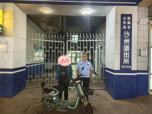 “太感谢你们了,这才几个小时就帮我把电动车找回来了!”9月26日,在敦煌市公安局沙州派出所,市民张先生从民警手中接过失而复得的电动车钥匙,感激之情溢于言表。