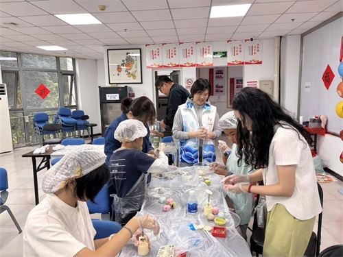 在本次活动的核心环节—手工制作冰皮月饼中。社区特别邀请了专业的面点师现场指导,从和面、包馅到成型,每一步都耐心讲解,青少年们则认真聆听,动手实践,现场洋溢着温馨与欢乐的氛围。大家不仅学会了制作月饼的技巧,更在动手过程中体会到了传统文化的魅力。