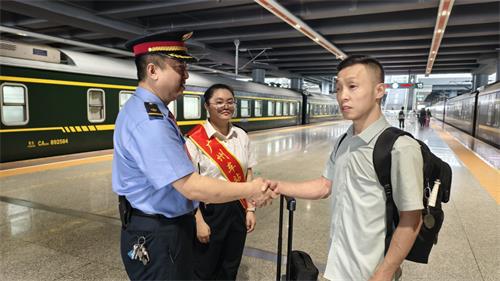 列车运行期间,乘务员冯超、陈新始终将这位旅客的需求放在心上,主动承担起照料职责:到了饭点,他们将热乎的饭菜送到旅客手中;看到水杯空了,及时帮忙打水续满;每日早晚,耐心协助旅客完成洗漱;每当旅客需要前往卫生间时,也会全程陪护在侧,用细致的服务为旅客搭建起安全便捷的乘车“通道”。