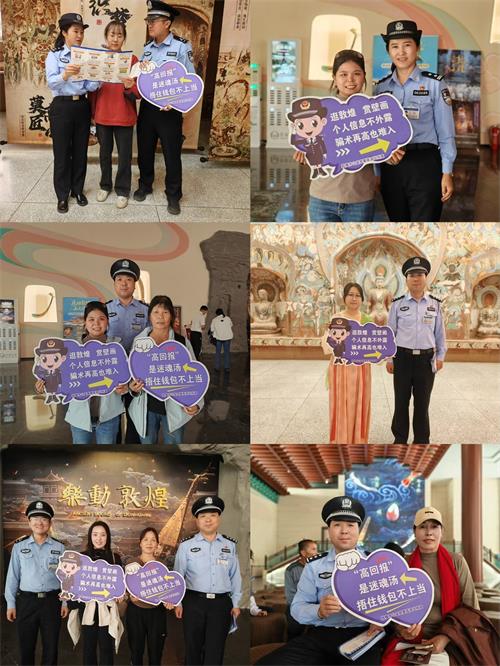 当“中国红”邂逅“匠心蓝”,敦煌市公安局莫高派出所深耕“又见”“乐动”演艺场,国庆反诈护游客平安。