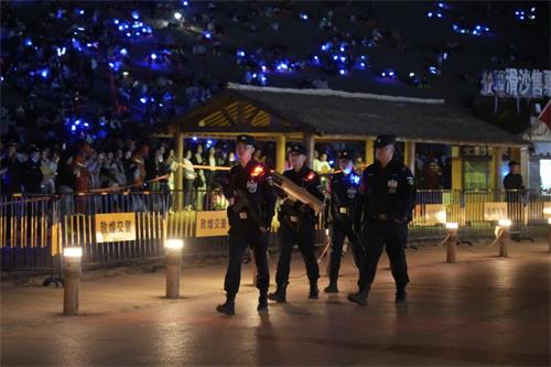 当国庆的欢歌遇上敦煌的沙海,当落日的余晖交融成百上千的荧光,一场在鸣沙山月牙泉上演的“落日合唱”,成为这个国庆最动人的西北乐章。 夜幕低垂时,鸣沙山不再是白日里单调的金黄。无数游客手持荧光棒,在沙丘上汇聚成璀璨星河,那一抹抹蓝紫色的光,是年轻人对祖国的告白,更是对这片土地的深情凝视。当《我和我的祖国》的旋律在沙海间响起,千人合唱的声浪裹挟着大漠的风,直抵人心最柔软的角落。游客们或站或坐,在沙坡上组成错落的“音符”,荧光棒的闪烁与歌声的起伏同频,将敦煌的夜点燃成家国情怀的舞台。 在这动人场景的背后,有一群身影在默默守护。身着警服的执勤人员,手持装备,在人群与沙坡间巡逻。“敦煌交警”的标识牌在灯光下格外醒目,他们用坚毅的步伐织就安全的网,让每一位沉浸在合唱中的游客都能安心。他们是大漠的“守夜人”,在国庆的狂欢里,以责任为笔,在沙海之上书写着平安的注脚。 鸣沙山的沙粒见证过丝路的驼铃,如今又记录下国庆的欢歌与坚守。这场落日合唱,是游客们对祖国的礼赞,是敦煌文旅融合的生动实践,更是无数守护者默默付出的缩影。当歌声渐歇,荧光渐暗,沙海归于宁静,那份家国同庆的感动与安心,却如鸣沙山的记忆,在每个人心中久久回荡。 在这个国庆,敦煌用沙海的辽阔、合唱的深情、坚守的温度,为祖国献上了一份独特的贺礼。它让我们看到,当个体的热爱汇聚成集体的颂歌,当平凡的坚守托举起盛大的狂欢,家国情怀便有了最鲜活、最动人的模样。