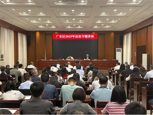 为进一步强化领导干部法治意识和责任担当,提升运用法治思维和法治方式解决问题、推动发展、维护稳定、应对风险的能力,10月13日上午,广安区2025年法治专题讲座在区委党校二楼报告厅举行。邀请省司法厅法治调研处处长严军作专题辅导,区委常委、政法委书记龚兵主持,在家区级领导,各乡镇(街道)、区级部门负责人等110余人聆听讲座。