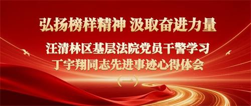 一个英模就是一面旗帜,一个典型就是一盏明灯。为深入学习贯彻习近平法治思想,进一步弘扬英模精神、发挥先进典型示范引领作用。近日,汪清林区基层法院各党支部掀起学习政法先锋丁宇翔同志先进事迹热潮,并撰写心得体会。