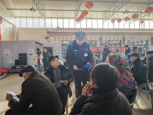 红灯笼串起了月牙泉镇中渠村社区活动室的暖光,月牙泉派出所民警的身影在人群里弯出温和的弧度——正举着反诈宣传册,给围坐的老人念着“陌生链接别点、转账前多问儿女”的叮嘱。