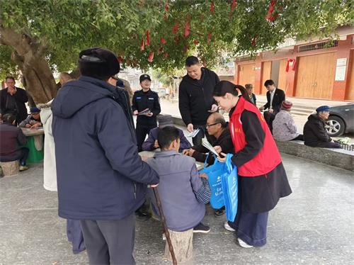 2025年12月4日是我国第十二个国家宪法日,为深入学习宣传贯彻习近平法治思想,推动宪法深入人心,东龙镇综治中心联合派出所、司法所、禁毒办等部门,在辖区范围内开展宣传活动。工作人员将宪法宣传与反邪教教育深度融合,为群众送上一堂生动的“法治安全课”。