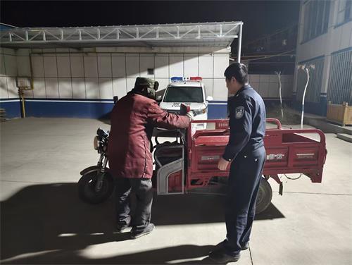 近日,肃州派出所接到群众报警称,一位老人推着电动车在街边缓慢行走,神情疲惫,疑似遇到困难。民警迅速抵达现场,只见老人衣着单薄,双手冻得通红,正吃力地推着电动车在路边徘徊。民警立即上前询问情况,老人颤抖着回答:“电动车没电了,回不了家,又不记得路……”见状,民警一边安抚老人情绪,一边将其搀扶上警车,将电动车妥善安置后带回派出所休息。