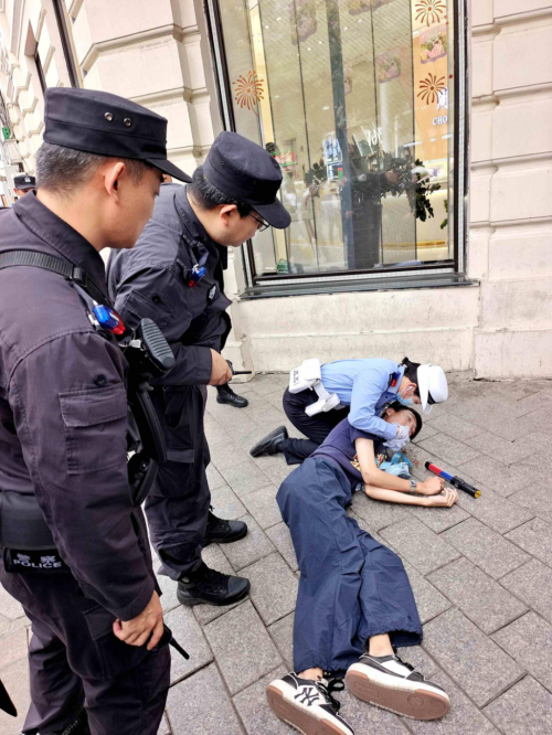 9月15日下午,中央大街与西五道街的喧嚣中突然传来一阵惊呼。民警张文丽循声望去,只见一名青年突发疾病倒地不起。危急关头,她毫不犹豫冲上前去,运用专业的急救知识进行处置;同时,示意同事火速拨打120。救援过程中,她始终跪在地上护住青年的头部,任凭鲜血浸透衣袖,直到青年逐渐恢复意识。当民警联系到患者家属,并与赶到的急救人员对接后,张文丽才默默换下带血的警服,转身又投入到执勤工作中。这一刻,“藏蓝制服”已成为群众心中最信赖的人。