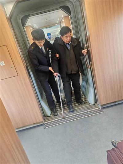 列车即将抵达换乘站,杨文玉早早来到老人身边,帮他取下行李,递上温水,到站后全程搀扶着送至车厢门口,还特意嘱托站台工作人员多加留意。老人紧紧握着她的手,欣慰感慨:“高铁服务太贴心了!”