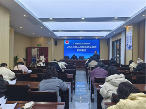 为深入推进社区矫正工作队伍规范化、专业化,全面提升社区矫正工作人员的业务能力,近日,广安区社区矫正管理局组织开展2025年第二次社区矫正业务知识考试,以考促学、以学促用,推动社区矫正工作提质增效。 本次考试内容涵盖《四川省社区矫正实施细则》及社区矫正工作人员“六不准”等规章制度,社区矫正档案管理、调查评估等关键业务。考试采用闭卷形式,全面检验了社区矫正工作人员的知识掌握程度。参考人员严格遵守考场纪律,认真审题、规范作答,展现出扎实的知识储备和严谨的职业态度。