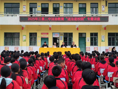 为进一步强化青少年法治观念,提升安全防范意识与自我保护能力,营造平安和谐的校园环境,2025年12月31日,三里司法所主动牵头,联合广西正大五星(覃塘)律师事务所、三里派出所、三里镇乡村建设中心、三里镇禁毒办等多家单位,共同走进三里二中开展法治教育“送法进校园”专题活动,为全校师生送上了一堂内容翔实、贴近生活的法治安全“必修课”。