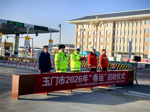 为切实做好2026年春运道路交通安全管理工作,筑牢群众安全出行防线,保障群众返乡返程安全有序,玉门市公安局交管大队联合川北高速大队、邀请辖区道路运输企业相关负责人及驾驶员代表参加,在高速收费站举行2026年春运启动仪式,全面拉开春运护航工作序幕。