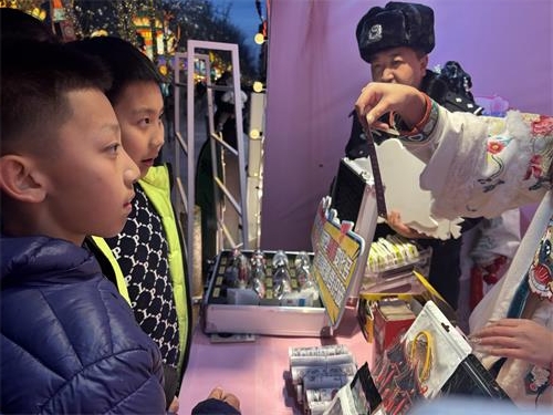 为使宣传“接地气”、更具吸引力,民警们主动融入夜市氛围,与现场活动的NPC(非玩家角色)进行趣味互动。借助NPC的引导和聚集效应,成功吸引了大量游客主动参与。这种轻松、互动性强的宣传方式,激发了游客的学习兴趣与参与热情,许多人在观摩模型、聆听讲解后,纷纷拿出手机拍摄,表示要分享给家人朋友,共同筑牢防毒拒毒的思想防线。