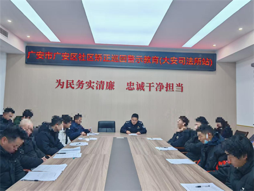 为进一步强化社区矫正对象法治意识与纪律观念,筑牢社区矫正安全监管防线,2026年2月5日,广安区司法局大安司法所邀请四川省成都第二强制隔离戒毒所派驻民警为辖区全体社区矫正对象开展了一场专题警示教育活动。 活动现场,派驻民警以《四川省社区矫正实施细则》为核心依据,结合强制隔离戒毒与社区矫正工作中查办的典型警示案例,以案释法、以例明纪,用通俗易懂的语言系统解读细则中监督管理、教育帮扶、考核奖惩、法律责任等重点条款,清晰告知擅自脱离监管、违规外出、不服从管理等行为对应的惩戒措施与法律后果,破除部分矫正对象“社区矫正无约束”的错误认知。同时结合春节临近人员流动增多的节点,提醒矫正对象严守管控规定、远离违法诱因,珍惜社区矫正的宽松改造环境,主动配合司法所开展各项矫正工作。
