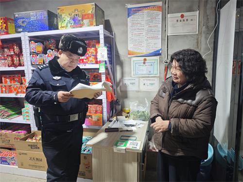 春节临近,烟花爆竹进入销售旺季,为切实防范安全事故,敦煌市公安局党河派出所组织民辅警深入辖区烟花爆竹经营店铺,开展节前安全专项检查,全力守护辖区群众平安过节。