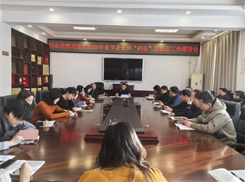 为深入贯彻全面从严治党要求,切实筑牢干部职工节日纪律防线,2026年2月13日,科右前旗司法局以“会议部署+工作提示”双线发力,对2026年春节期间各项纪律要求再强调、再部署,坚决杜绝违规饮酒、违规吃喝等违纪行为,全力营造风清气正的节日氛围,为全国“两会”顺利召开保驾护航。