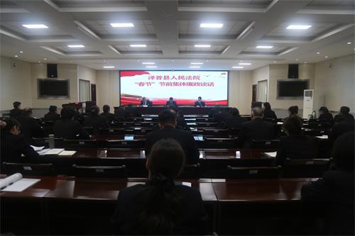 新春佳节将至,为深入贯彻全面从严治党、从严治院要求,持续加固中央八项规定精神堤坝,严明节日纪律作风,筑牢干警廉洁自律思想防线,营造风清气正、文明祥和的节日氛围,泽普县人民法院召开2026年“春节”节前集体廉政谈话会议,院领导班子、全体干警参会。