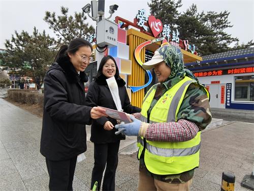 宣传中,没有晦涩的法言法语,只有像邻里拉家常般的娓娓道来。当干警将宣传信递到一位带着孩子的年轻母亲手中时,指着关于“家务劳动补偿”的条款轻声解读:“大姐,法律不仅保护您的财产权益,也认可您为家庭付出的每一份辛劳。”通过将法理融入情理的沟通方式,让原本严肃的法律条文有了温度,变成了大家愿意听、听得懂的“贴心话”,引得不少游客驻足围观。