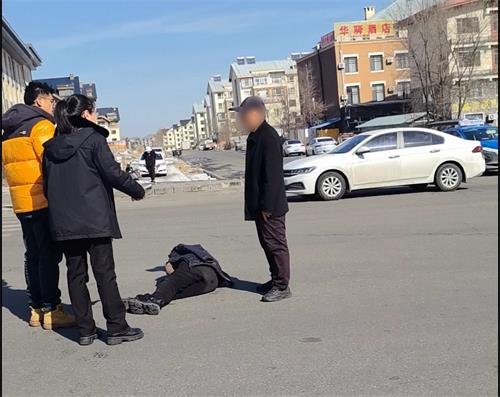 当日上午,干警们驱车途经长白山管委会池北区美人松路与和平路交叉口时,发现一位老人躺在斑马线旁,过往车辆往来穿梭,老人身体状况不明,现场情况十分紧急。“快停车,我们过去看看!”法官助理刘畅当即示意停车,干警们迅速规范停靠好车辆,快步来到老人身边。