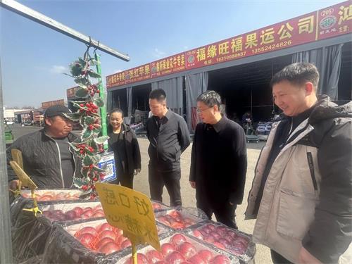3月16日,运城市人民政府副市长尚玉良一行来到北京新发地市场参观考察,北京新发地市场新闻中心主任杨斌热情接待并陪同走访。双方围绕运城苹果市场销售、两地农产品产销协作、助力乡村振兴等深入交流。