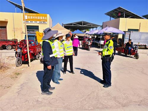 4月9日下午,趁农村赶集日人流集中,敦煌市公安局郭家堡派出所交管组民辅警深入前进村集市,开展交通安全宣传暨三轮车“亮尾”专项行动,把安全服务送到群众身边,全力筑牢农村道路交通安全防线。