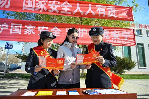 为深入贯彻落实总体国家安全观,迎接第十一个全民国家安全教育日,4月15日,新疆克州边境管理支队乌恰边境管理大队联合乌恰县各机关单位,在乌恰县人民广场开展集中法治宣传活动,以“统筹发展和安全 护航‘十五五’新征程”为主题,推动国家安全知识走进群众、深入人心。
