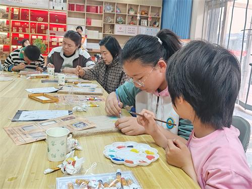 活动中,社区志愿者精心准备泥板、矿物颜料等传统创作材料,以敦煌壁画经典形象九色鹿为切入点,用生动易懂的方式讲述九色鹿传说,普及泥板画制作技艺,示范讲解勾线、上色等创作流程,带领孩子们感受敦煌艺术的深厚底蕴与独特魅力。20余名辖区青少年认真聆听、踊跃参与,充分发挥想象力与创造力,将童真创意与传统艺术相融,在一笔一画、一涂一抹中精心勾勒九色鹿灵动姿态,生动呈现敦煌文化之美。