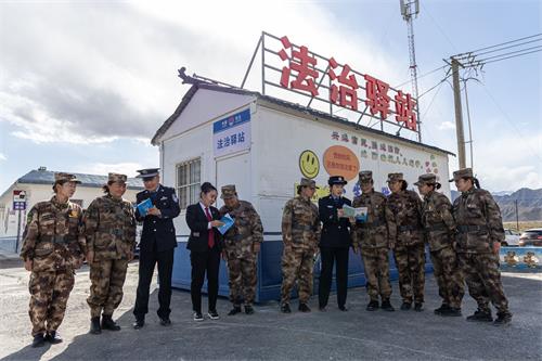 4月15日,新疆出入境边防检查总站克州边境管理支队吐古买提边境派出所联合阿图什市法院,依托“法治驿站”开展“万里边关普法行”主题宣传活动。活动现场,民警与法官通过案例讲解、法律咨询、发放宣传资料等形式,向辖区群众和过往边民开展普法宣传。双方以“联合普法+精准服务”模式,将法律服务延伸至边境一线,切实打通法治宣传“最后一公里”,为平安边境建设注入强劲法治动能。