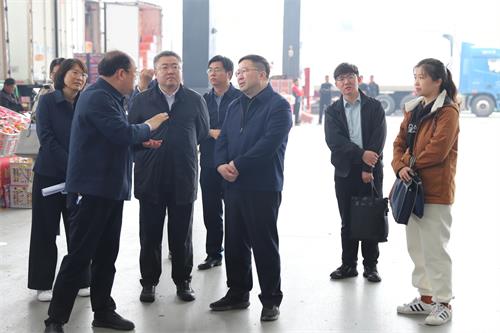 4月17日上午,市发改委党组成员、副主任赵云龙、经贸处处长蒋海峰、一级主任科员尤冲一行到新发地市场调研市场保供稳价、重点项目建设及转型升级工作。丰台区副区长戴伟明,新发地专班执行指挥长张赓正,新发地市场总经理张月琳、常务副总经理顾兆学等陪同调研。