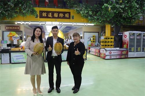在国际榴莲馆,考察团深入调研泰国榴莲的市场销量及消费反馈;随后走进泰和果业、佳农等核心进口水果档口,详细询问泰国榴莲等热带水果的销售情况及市场推广情况,对泰国水果在华销售热度有了直观认知。参观市场沙盘时,详细了解了市场整体布局、区域功能分区及国际化发展规划,感受新发地市场农产品流通枢纽的格局与实力。