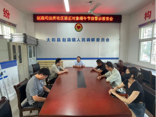 为确保端午节期间社区矫正安全稳定,进一步加强对社区矫正对象的管理教育工作,2024年6月7日赵庙司法所组织辖区内全体社区矫正对象进行集中教育学习。