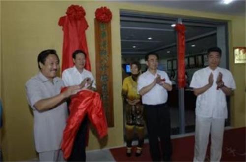 图:2009 年,为打造后奥运经济时代,在北京奥体中心建立汤瓶八诊康 复理疗中心。杨华祥教授陪同时任全国人大民族事务委员会主任马启智、奥体 中心主任马敬选、汤瓶八诊机构名誉主席何起沄出席揭牌仪式。