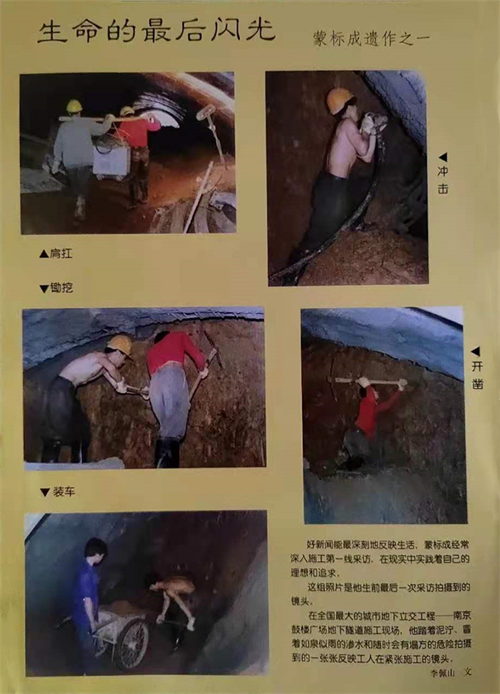 蒙标成在南京全国第三届城运会的配套工程——鼓楼广场地下隧道建设工地,拍摄的一线职工艰苦施工的照片