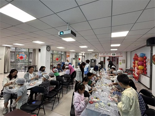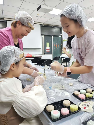 在本次活动的核心环节—手工制作冰皮月饼中。社区特别邀请了专业的面点师现场指导,从和面、包馅到成型,每一步都耐心讲解,青少年们则认真聆听,动手实践,现场洋溢着温馨与欢乐的氛围。大家不仅学会了制作月饼的技巧,更在动手过程中体会到了传统文化的魅力。