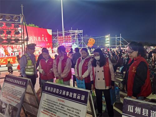 国庆、中秋双节来临之际,为进一步提升群众交通安全意识,有效预防节日期间道路交通事故。9月28日晚,瓜州公安交管部门借助渊泉镇2025年双节广场活动为契机,走进渊泉湖广场,开展“平安双节 文明出行”主题交通安全宣传活动,为居民节日出行筑牢安全防线。