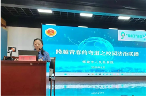 活动现场,检察干警陈妍以《跨越青春的弯道之校园法治联播》为主题,紧扣青少年生理心理特点与日常行为场景,通过“案例还原+法律拆解”的方式,直观呈现不良行为向违法犯罪发展的渐变过程,清晰界定青少年日常行为的法律“红线”与“底线”。 同时,结合互动提问引导学生主动思考,帮助大家将“知法、懂法”的认知转化为“守法、用法”的行动自觉,为青少年规避成长风险、守护青春安全提供了精准指导。 下一步,邹城市检察院将持续深化“法治进校园”行动,针对不同学段青少年特点设计防治校园欺凌、网络安全保护等专题内容,通过“检察官+教师+家长”联动宣讲模式,推动法治教育从“进校园”向“驻校园”“融家庭”延伸,全方位守护青少年健康成长。(作者单位:邹城市司法局)