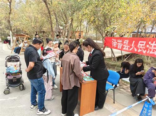 为积极践行司法为民宗旨,延伸司法服务触角,保障“十一”黄金周期间旅游市场的和谐稳定,提升游客及旅游经营者的法治意识,泽普县人民法院在“十一”期间,组织法官深入金湖杨国家森林公园、叶尔羌河国家湿地公园、黑水营沙漠公园等旅游景点,开展法制宣传活动。