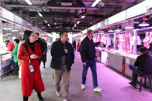 在综合交易大厅,代表团进一步考察了市场日常交易实况。大厅内交易品种丰富,涵盖牛肉、羊肉等畜产品,鸡、鸭等禽类产品及各类水产品,可充分满足不同消费者的采购需求,其完善的交易体系给代表团留下深刻印象。