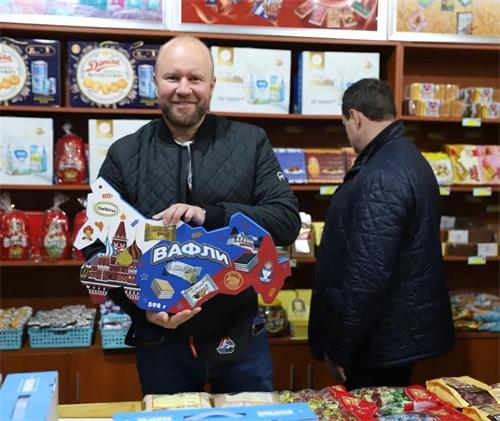 代表团首先走进全国名特优农产品展销中心,通过市场沙盘模型深入了解新发地市场的基本功能区划分、经营产品种类及销售运营等核心情况。在俄罗斯产品展示区,代表团成员看到威化饼干、巧克力、伏特加等多款熟悉的本国特色产品。市场方介绍,这些俄罗斯产品凭借独特风味与优良品质,已赢得国内外消费者的广泛喜爱。