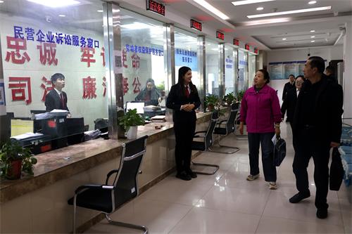 调研组一行首先实地察看了法院诉讼服务中心、涉企案件绿色通道等场所,详细了解立案登记、诉调对接、智慧法院建设等方面的工作情况,并与一线法官和工作人员进行了现场交流。