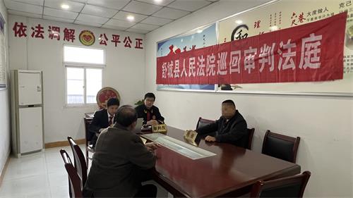 挂起国徽、摆好座签,近日,舒城法院晓天法庭将庭审现场搬至晓天镇郭冲村委会,巡回审理了一起建设工程施工合同纠纷案件。