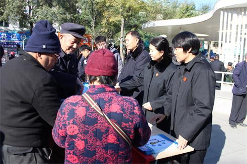 11月18日上午,兴平法院组织干警在北十字广场开展普法宣传,拉开为期20天的平安建设宣传活动序幕。旨在推动平安建设工作走深走实,进一步提升群众司法获得感和满意度。