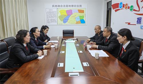 2022年6月,阿克苏垦区人民法院永宁镇人民法庭与乌什县人民法院英阿瓦提人民法庭创新设立兵地融合巡回法庭,2023年11月被新疆维吾尔自治区高级人民法院确定为“枫桥式兵地融合人民法庭”创建试点单位,通过兵地法官相互任命,打破行政区划带来的司法壁垒,让不同行政辖区的法官坐在同一个法庭审理案件。